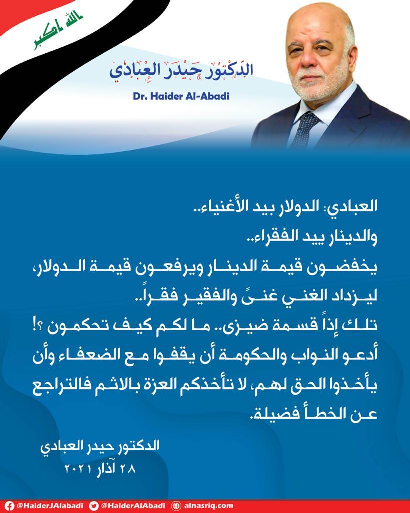 — Haider Al-Abadi حيدر العبادي (@HaiderAlAbadi) October 28, 2025