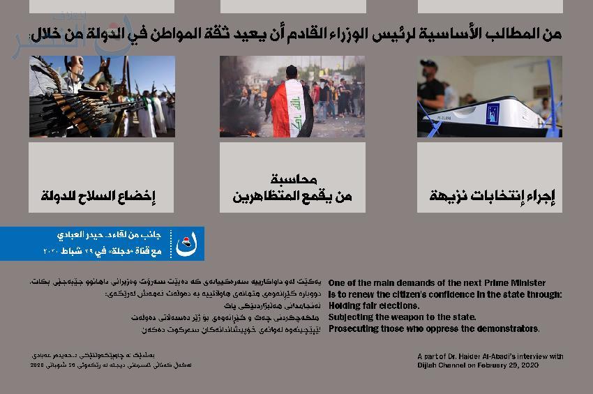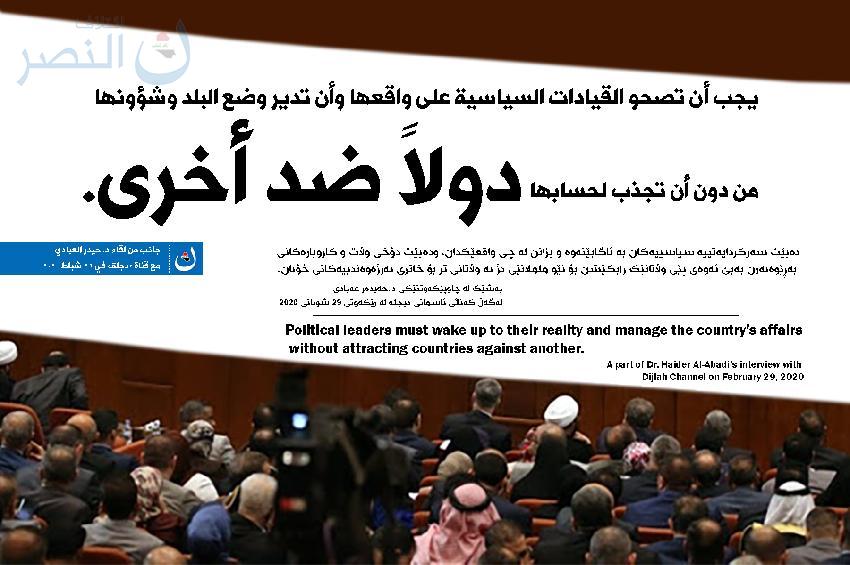 • Al Nasr Coalition is a national project led by Dr. Haider al-Abadi, aims to build and manage the Iraqi state according to the elements of good governance. It works for all Iraqis, with all their nationalisms, religions, and sects, to achieve unity, justice, sovereignty, and welfare.